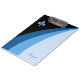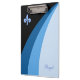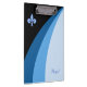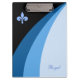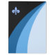 Editable calligraphy, abstract waves in blue shades and fleur de lis. Text only on the front side.