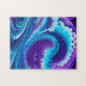 A dynamic and vibrant composition of abstract ocean waves with fluid overlapping shapes creates a sense of movement and energy. And the combination of purple and turquoise colors with hints of white and blue evokes a dreamy and warm atmosphere