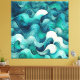 Aesthetic greens and blues abstract waves wall art print on a large square canvas.