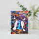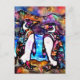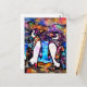 Abstract Whimsical Penguin Family Floral Colourful Postcard