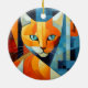 Abstract Whiskers: Orange Cat Ceramic Ornament