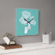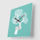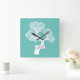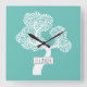 Abstract white circle tree and name light teal square wall clock
