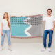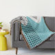 This throw blanket has a geometric design made from two scalloped rectangles and a rectangle formed by rows of black dots. If you like the design but prefer different colours, message me.