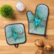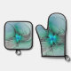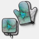 Abstract With Blue, Modern Fractal Art Oven Mitt & Pot Holder Set