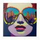 Pretty woman looking a the city skyscape through her sunglasses with a reflection of skyscrapers and city life colourful AI art. generativecontent