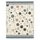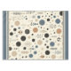 An elegant pattern featuring various circles and botanical motifs in a soothing palette of beige, brown, black, and blue. This minimalist design evokes a serene woodland atmosphere.