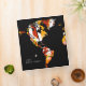 Abstract map of the world on solid black background, with the image of a small airplane, personalized with the name and initials of the stylish traveller... for various subjects related to travel, geography studies or others