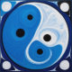 A modern depiction of yin yang in colours of blue and white against a backdrop of soothing circular geometric shapes, symbolizing the balance of opposing energies in contemporary life.
