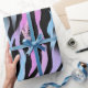 Stylish wrapping paper with abstract zebra print pattern in black, blue, violet and pink colours, made of my original acrylic painting.