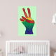 Un tableau abstrait de la main du signe de paix en utilisant les couleurs de l'arc-en-ciel, par CherylsArt, est imprimé sur des affiches personnalisées. La couleur arrière - plan peut être customisée. Je me suis amusé à utiliser ma propre main pour créer ce design.
