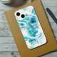Design coque iphone moderne et personnalisé avec un abstrait turquoise et blanc mélange de peinture liquide arrière - plan avec votre nom et initiale écrit dans un script sophistiqué et une police sans serif moderne. Le texte est entièrement personnalisable.