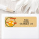 Ces étiquettes d'adresses de retour ont une conception abstraite moderne du milieu du siècle d'un cercle doré à l'intérieur d'un cercle vert avec des rayures orange et blanche.