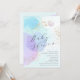 Design abstrait moderne de baby shower garçon avec un arrière - plan d'aquarelle en bleu doux et décoré avec des cercles pastel violet et bleu et des arrosées d'or. Visitez notre boutique pour voir notre collection de produits correspondants.