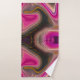 Serviette au design super et abstrait. Les couleurs rose et noire se mélangent et se mélangent dans un mouvement tourbillonnant. Saupoudrer de parties scintillant en faux or entre les couches.