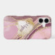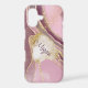 Sur ce joli étui téléphonique pour elle, le rose doux se marie à un marron muet et un peu de gris tan pour former un effet marbré unique. Les lignes de parties scintillant en faux or séparent les couleurs. Son nom est en marron bordeaux assorti sur une bannière bordée de parties scintillant dorée au centre.