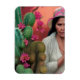 Stylish fridge magnet features beautiful ai generated surreal style digital painting of "Abuela", Spanish for Grandmother... with cacti and flowers.