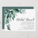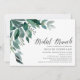 Chic bridal shower brunch invitation features lush green eucalyptus leaves and foliage, illustrated in watercolor. Personalize with your bridal brunch details aligned at the right. Cards reverse to solid forest green.