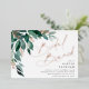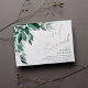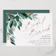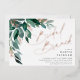 Elegant bridal shower brunch invitation features watercolor eucalyptus leaves and green foliage cascading from the upper left corner, embellished with rose gold foil accents. Personalize with your bridal brunch details aligned at the right. Cards reverse to solid forest green.