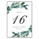 Elegant botanical table number cards feature sprays of vibrant green botanical leaves surrounding your table number, event date and additional custom text. Design repeats on reverse side. Coordinates with our Abundant Foliage wedding and event collection.