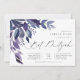 Lovely botanical invitations for bat mitzvahs feature watercolor leaves and foliage in shades of indigo blue and violet purple, cascading from the upper left corner. Customize with your Bat Mitzvah details aligned at the right and embellished with chic calligraphy. Additional template field provided on the back for more details.