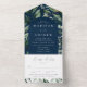 Abundant Greenery Arch Navy Wedding All In One Invitation