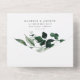 Modern, botanical all-in-one wedding invitations featuring your wedding details nestled inside of an arched frame surrounded by eucalyptus, ferns, and other rich greenery with a navy background. Personalize the watercolor greenery all-in-one wedding invitation with wedding details such as your names, wedding date, venue information, response date, meal choices, etc. Designed to coordinate with our Abundant Greenery wedding collection.