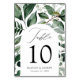 Elegant, botanical wedding table cards featuring the table number, your names, and your wedding date nestled in an arch frame surrounded by eucalyptus, ferns, and other rich greenery. Personalize the number for each table card and add it to your cart. Designed to coordinate with our Abundant Greenery wedding collection.
