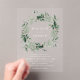 Elevate your wedding with our elegant Abundant Greenery wedding invitations, featuring your names gracefully encircled by a lush wreath of eucalyptus, fern, and rich greenery, all displayed on a transparent acrylic background. The modern botanical design beautifully frames your wedding details below, creating a refined and versatile invitation perfect for any season. Ideal for nature-inspired weddings, these unique invitations blend elegance with a touch of natural beauty.