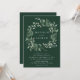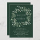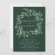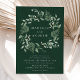 Elegant wedding invitations featuring your names encircled by a wreath of eucalyptus, fern, and other rich greenery with your wedding details displayed below on a dark green background. The modern botanical wedding invitations reverse to a solid green background. Designed to coordinate with our Abundant Greenery wedding collection.