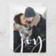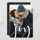 Un carte photo de vacances simple et élégant permet à votre photo préférée de prendre le centre de la scène. Le design chic est doté d'une photo à fond saigné vertical ou à orientation portrait, avec "joie" superposé en lettres blanches. Personnalisez avec votre nom ou votre nom de famille, et l'année. Les cartes retournent à un motif écossais rouge et vert tartan plaid.