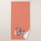 Stylish contemporary CHRISTIAN SCRIPTURE Bath Towel Set with text which reads LIVE ABUNDANTLY. This is based on the Scripture from John 10:10 about living an abundant life.The main typography is sans serif white, with a dark teal script, set against a salmon peach background. Other colours available.
