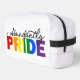 Abundantly Pride Gay Proud Dopp Kit / Cosmetic / Toiletry Bag Design in modern typography that reads "ABUNDANTLY PRIDE" in a simple yet clean minimalist design. Simple design in black and Pride rainbow colours that works great for anyone.