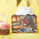 Abyssinian Cat Sitting by Fireplace with Christmas Wrapping Paper