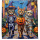 Adorable Abyssinian cats dressed in playful Halloween costumes carry pumpkin buckets while trick-or-treating under the moonlit sky. This festive design highlights the breed’s sleek coat, expressive eyes, and lively personality, perfectly capturing the spooky yet fun atmosphere of Halloween night. A charming celebration for cat lovers and Halloween fans alike.