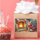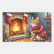 This warm and festive Christmas illustration features a graceful Abyssinian sitting beside a glowing fireplace, gently wrapped in twinkling Christmas lights with stockings hanging above. The breed’s sleek coat and curious expression add elegance and charm to this cozy holiday scene. Perfect for Abyssinian lovers, holiday décor fans, and Zazzle shoppers searching for unique Christmas artwork that celebrates their favorite cat breed.