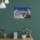 Poster of the Academy of Arts of Athens, Greece, with the statues of ancient Greek philosophers Plato (on the left) and Socrates (on the right). The statue of mythological Greek goddess Athena is behind Plato.