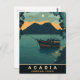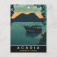 Fishing boat at Acadia National Park, Harbour Jordan Pond, mountain. Desert, Maine. Vintage travel postcard