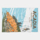 Acadia vector artwork design. Acadia National Park is primarily on Maine's Mount Desert Island. Its landscape is marked by woodland, rocky beaches and glacier-scoured granite peaks such as Cadillac Mountain.