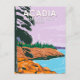 Acadia vector artwork design. Acadia National Park is primarily on Maine's Mount Desert Island. Its landscape is marked by woodland, rocky beaches and glacier-scoured granite peaks such as Cadillac Mountain.