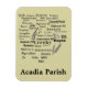 This Louisiana themed magnet is perfect for any Acadia Parish home. Names of cities and roadways form the shape of Acadia Parish. Practically anywhere in the parish you can go! Background colour is easily customizable. This design is available on several other products.