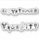 The first sticker is "acceptance" written in religious and other symbols in the style of "coexist". A: atheism C: Islam C: American Sign Language/Deaf culture E: gender equality/transgender pride P: yin-yang/Eastern religions T: Christianity A: Judaism N: rainbow/LGBTQIA+ pride C: Wicca/pagan religions E: Hinduism.