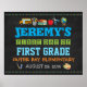 Une affiche amusante pour commémorer le premier jour d'école de votre enfant, complétée avec le nom de l'école et la date.