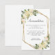 Chic elegant and formal Wedding Information enclosure card features romantic wedding roses in watercolor vanilla white with hints of blush pink displayed in leafy greenery on a crisp white background. A sparkling golden colour geometric crystal-shaped frame provides a trendy touch. Traditional, classic wording provides timeless sophistication. Personalize wedding details for your guests in elegant black lettering and script. The back of the card is chic white. Feel free to contact me at invitationsuites@gmail.com if you have questions regarding this or any of our designs.