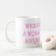 In pink text it reads: "Where there is a Woman, there is Accomplishment." The O's in the quote are actually the sign for Female.