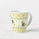 Tasse à café jaune vif avec accordéons, papillons et motifs musicaux.
