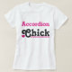 This white t-shirt is a playful shout-out to female accordion players, featuring the phrase "Accordion Chick" in bold, black, and magenta fonts. The design includes a whimsical heart detail, emphasizing the love for the instrument and the music it creates. It's a fun and stylish way for accordion enthusiasts to show off their musical passion and a great conversation starter at gatherings, concerts, or casual outings.