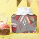 Wrap up gifts for your favourite musician in style. This wrapping paper features an all over pattern of red accordions against a grey background with music notes in red, grey and white. It's perfect for accordion players and polka fans.