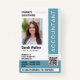 Accountant ID with photo office worker Blue Badge. Personalized accountant ID - an elegant identification badge with your QR code, photo, name, job title, and other details - if required.
