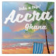 Accra Ghana beach travel poster, with a deck chair and palm tree on the Ghanaian beach.