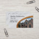Une carte de visite élégante et professionnelle avec un arrière - plan en marbre bleu clair et une arche en bois encadrant la photo d'une maison magnifiquement aménagée. Beaucoup d'utilisations pour cette carte. Toits, constructeurs de maisons, remodelage domiciliaire, aménagement paysager, ou Réalisateurs.